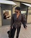 The Aramé Jacket is a bold interpretation of vintage tailoring, featuring a sculpted silhouette, broad shoulders, and a cinched kimono-style waist. Crafted from fine faux suede, its strength lies in the details — intricate stitching, soft texture, and a shape that empowers.