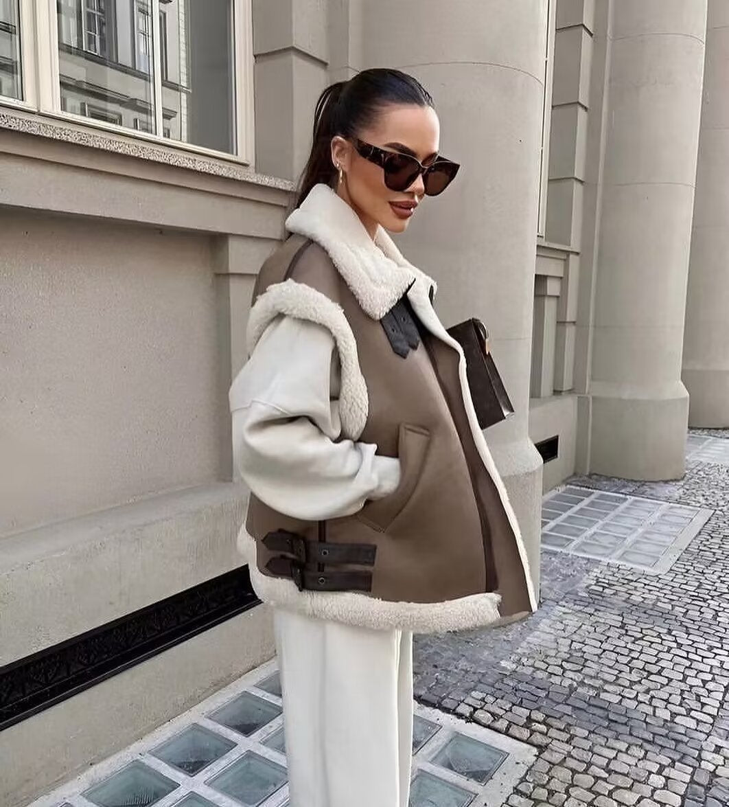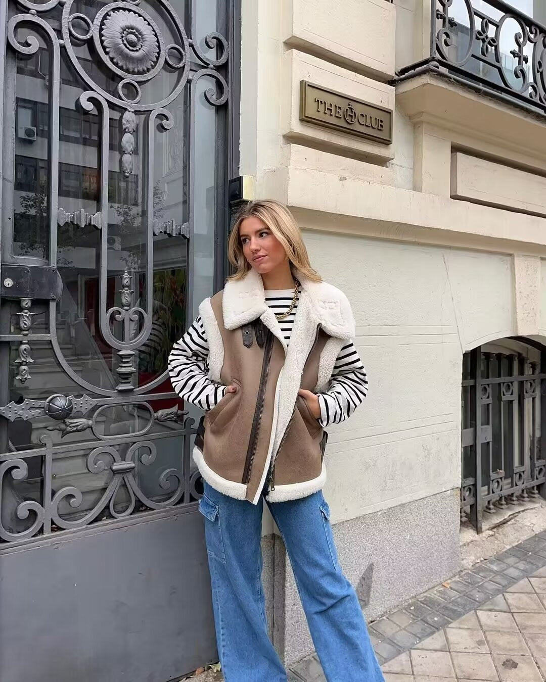 The Céleste Jacket wraps you in elevated warmth with its soft shearling finish and refined silhouette. Designed to blend comfort with presence, it’s the perfect layer to soften cool days while making a subtle yet striking impression.