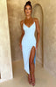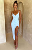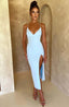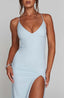 The Lysandra Dress is designed to turn heads — softly, confidently, effortlessly. Crafted from our signature double-layered stretch fabric, it embraces the silhouette with fluid precision. A plunging neckline, delicate straps, and thigh-high split speak to modern femininity, while the open back with crossover ties brings quiet drama to every movement.